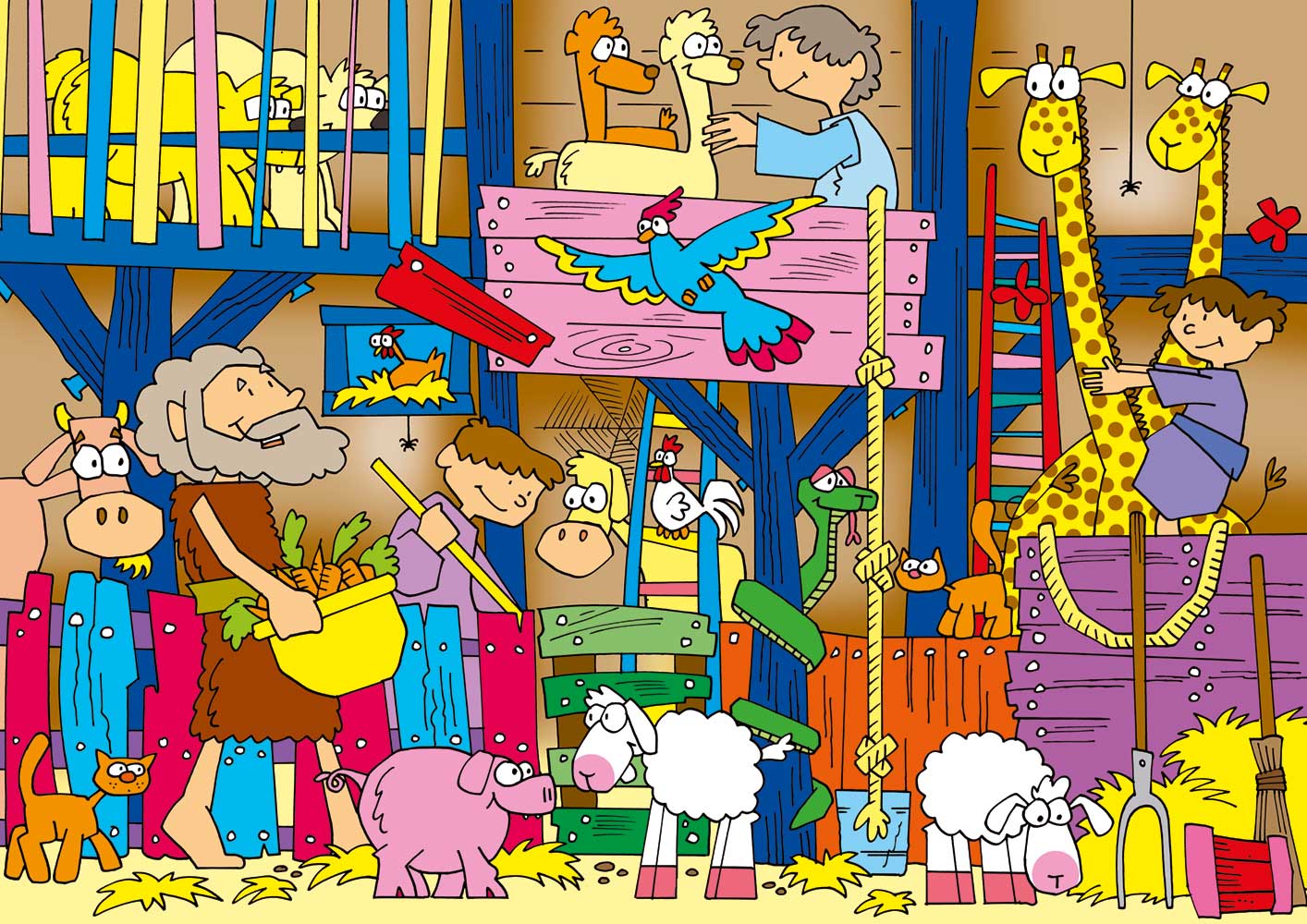 Bijbelse afbeeldingen en kleurplaten - Genesis 7, 8 - Noach, zondvloed, ark, dieren - Opkijken.nl