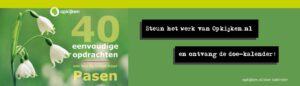 Doe 40 dagen lang een eenvoudige opdracht om bewust toe te leven naar Goede Vrijdag en Pasen. Ontdek dat dit veel kan betekenen in het leven van een ander en jezelf! Deze opdrachten zijn te vinden op de nieuwe doe-kalender van Opkijken.nl.