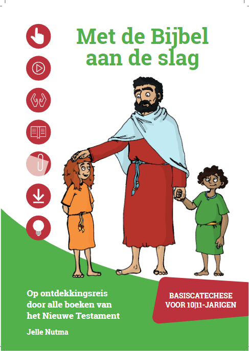In Met de Bijbel aan de slag komen er veel weetjes en feiten over de Bijbel voorbij. Ben jij ongeveer 10 of 11 jaar, dan kun je thuis of in de kerk met dit boek aan de slag. Je leert basiskennis uit het Nieuwe Testament door verschillende opdrachten en activiteiten uit te voeren. Met deze basiscatechese worden tieners gestimuleerd om de bijbel te ontdekken. Het is aantrekkelijk gemaakt zodat het passend is bij de ontwikkeling van jonge tieners. Ze zijn leergierig en willen ontdekken hoe het zit. In 25 lessen worden de evangeliën en de brieven uit het Nieuwe Testament behandeld aan de hand van tekst-informatie, verwerkingsvragen, spelelementen en opdrachtjes.
